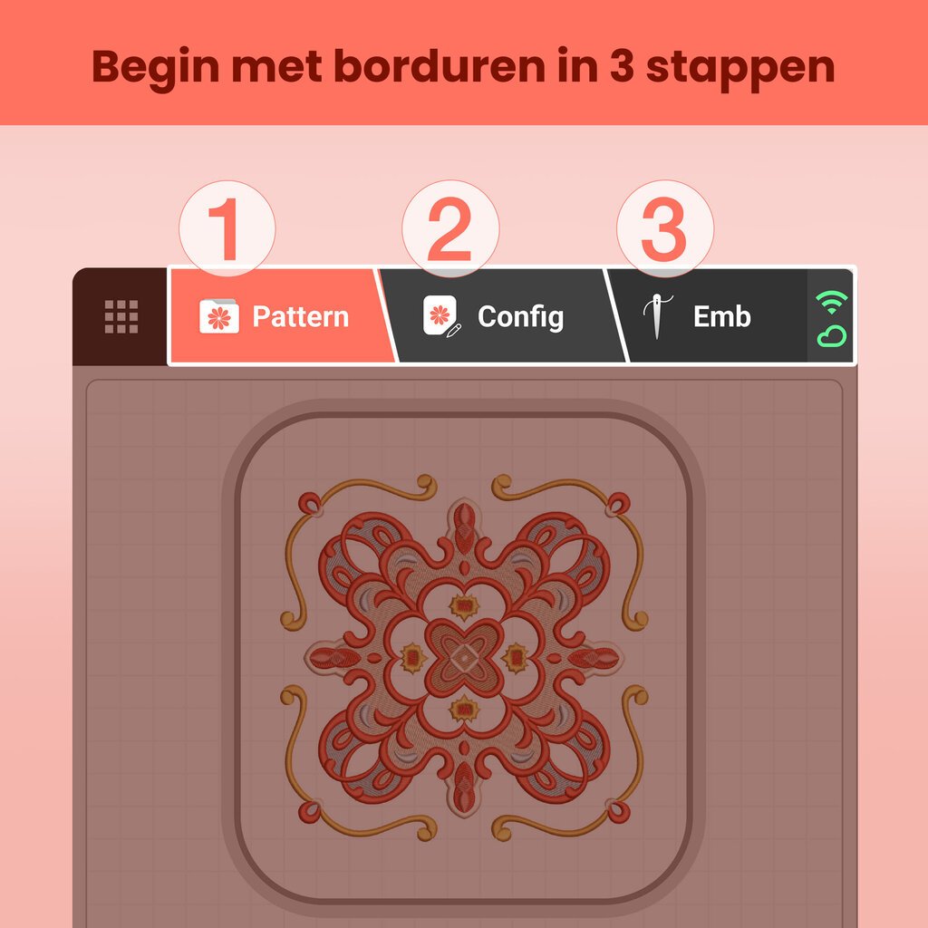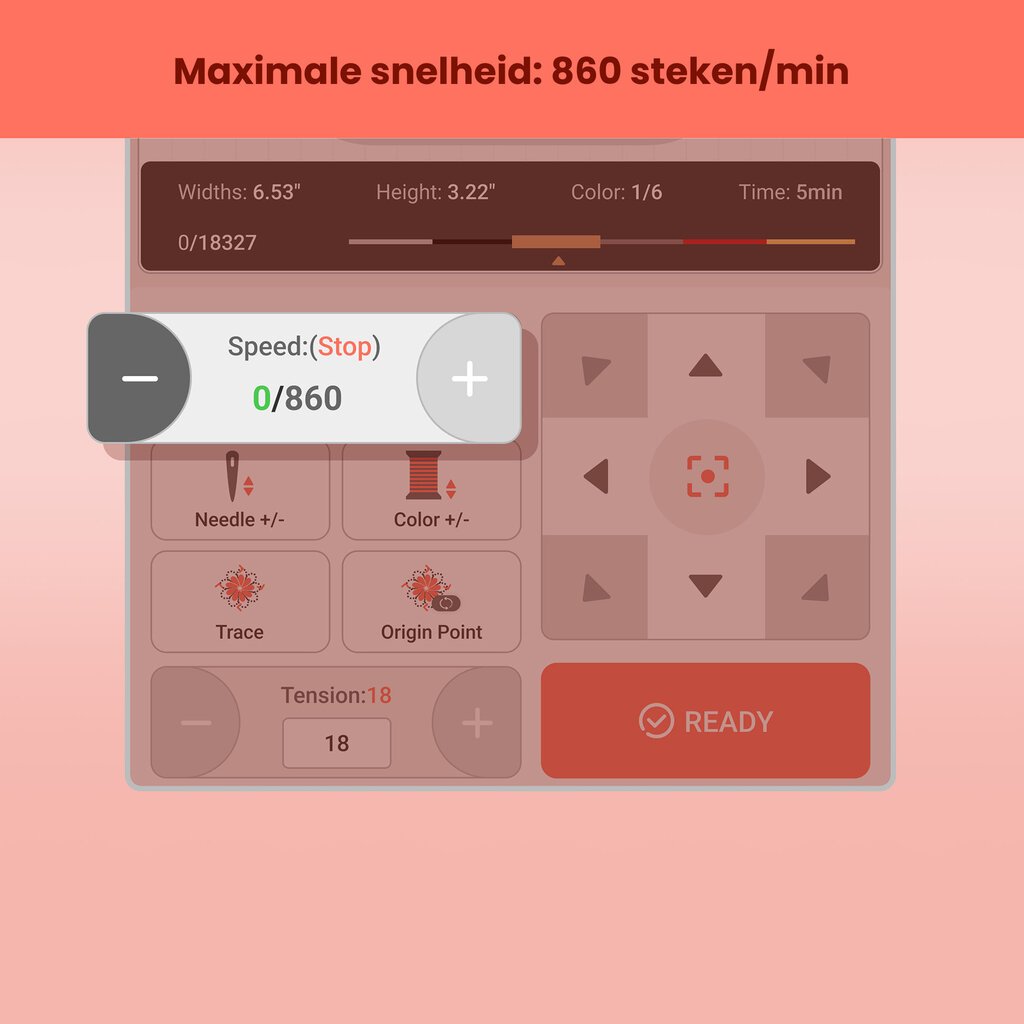 Laad eenvoudig je eigen ontwerpen in via de inbegrepen software en werk met tekst, logo’s of illustraties. Overzetten kan via USB of WiFi, zodat je jouw ideeën moeiteloos tot leven brengt in strak borduurwerk.