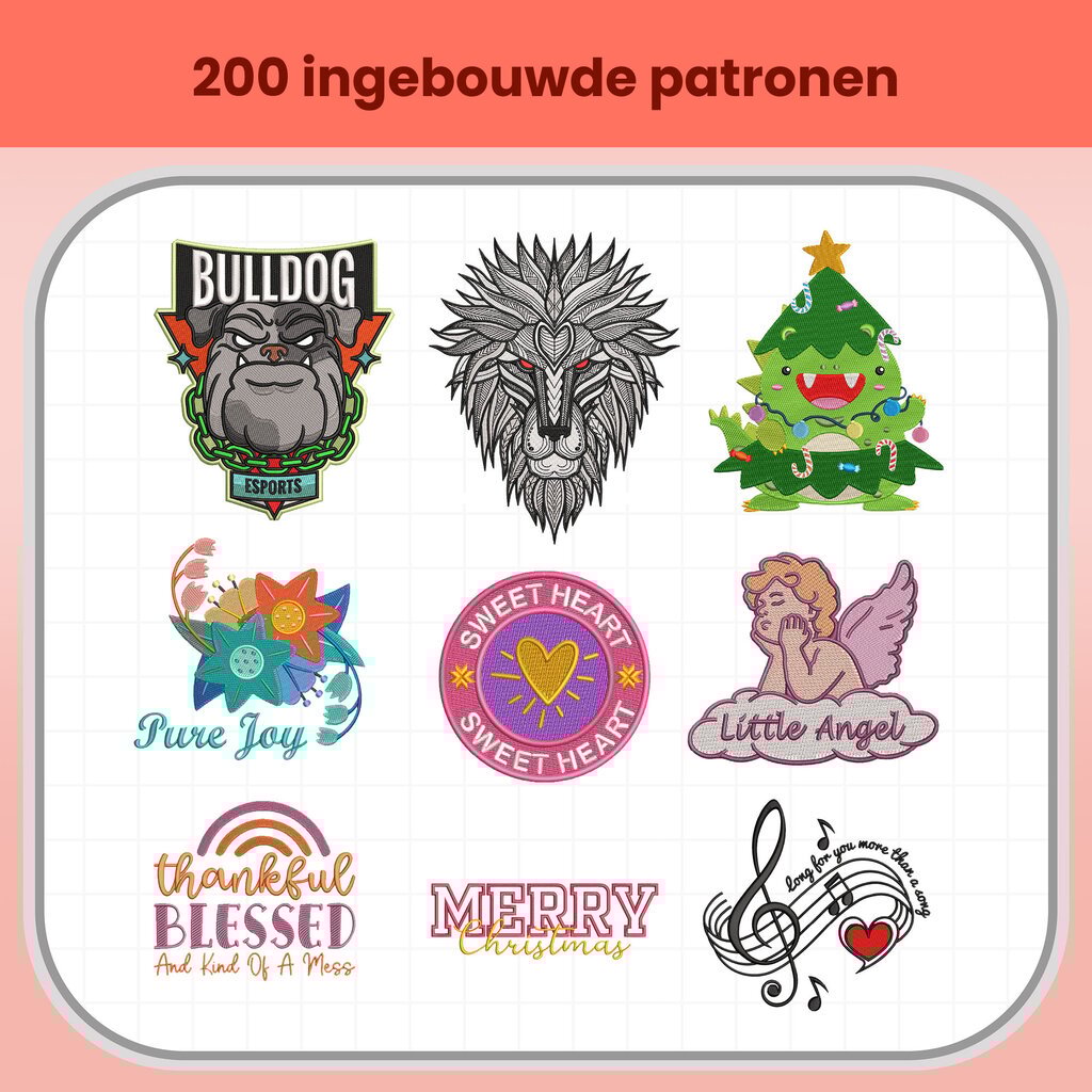 Start meteen met een ruime collectie voorgeprogrammeerde ontwerpen en verschillende lettertypes. Ideaal om snel te personaliseren, te oefenen of in no time een afgewerkt project te maken.
