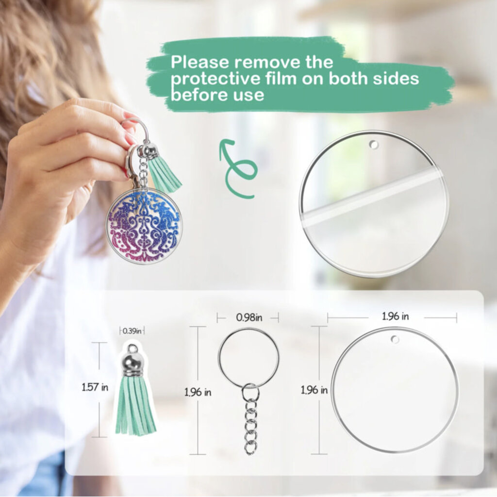 Deze acryl blanco's zijn stevig en gemaakt van hoogwaardige materialen. Je kunt DIY ambachten maken met deze transparante ronde sleutelhangers van 5 cm diameter.