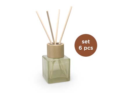 Set/6 kubus COTTON glazen flesjes met NATUREL top + geurstokjes