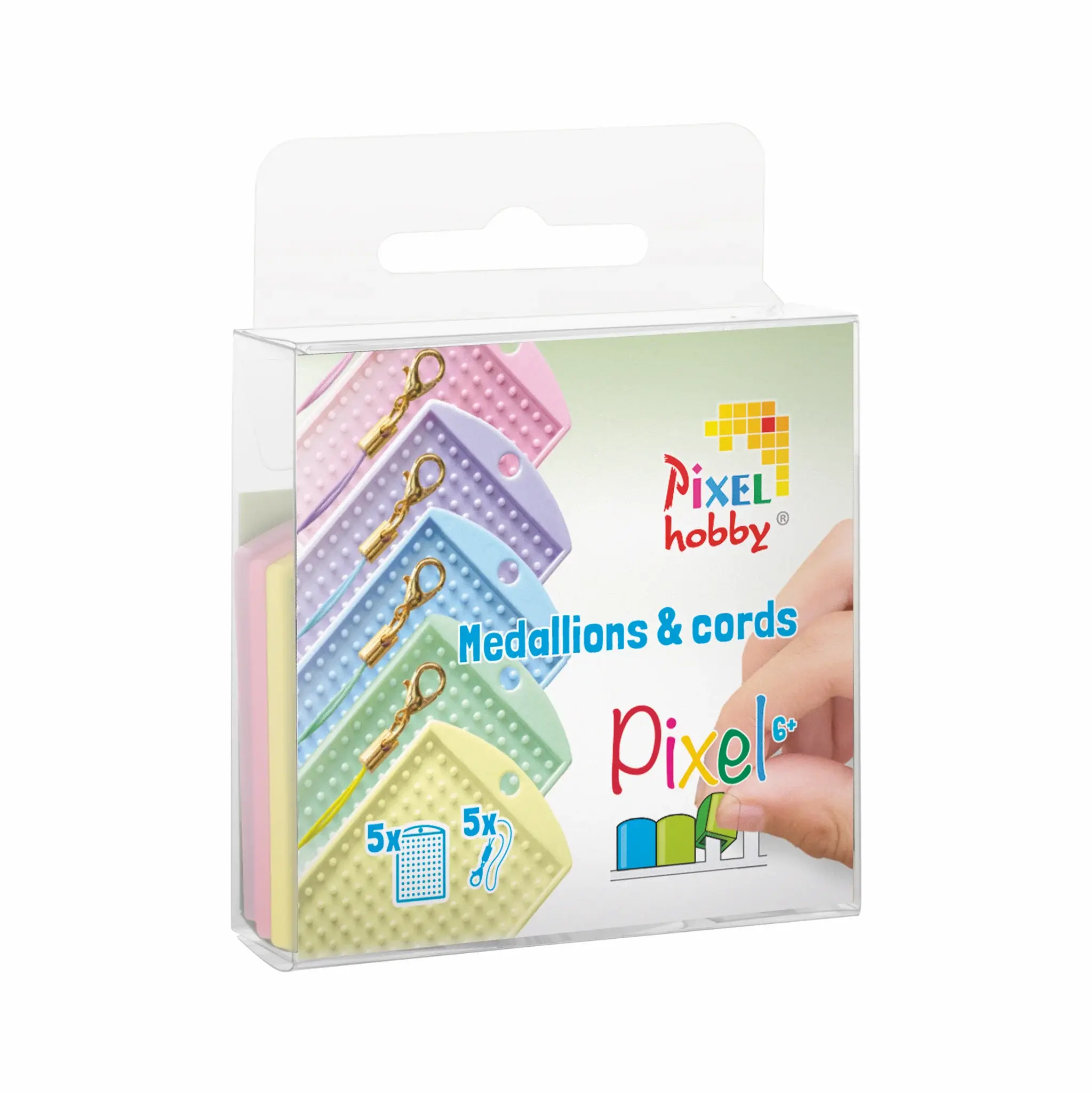 Deze set bevat 5 Pixelhobby medaillons en 5 color cords.