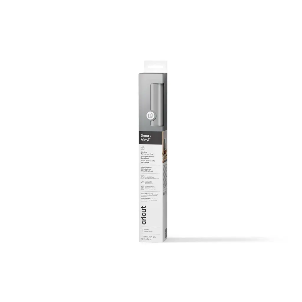 Maak je creaties stijlvol én duurzaam met Cricut Smart Vinyl Permanent – Mat Silver (33 × 91 cm). Deze elegante, matte vinylkleur geeft elk project een luxueuze uitstraling die blijft plakken. Dankzij de Smart Vinyl-technologie gebruik je het materiaal zonder snijmat – gewoon laden en snijden!