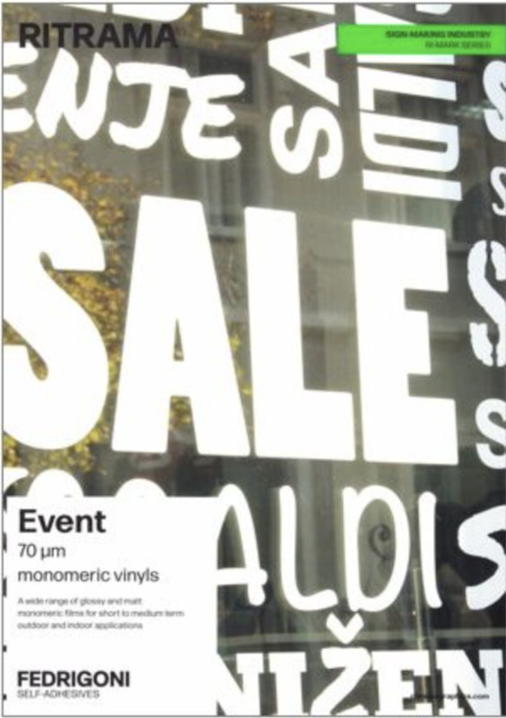 Kleurenkaart met kleurstalen van de Ritrama Event 100 (Glossy) en Event 300 (Matt) Series, formaat van de stalen ca. 24 x 24 mm.