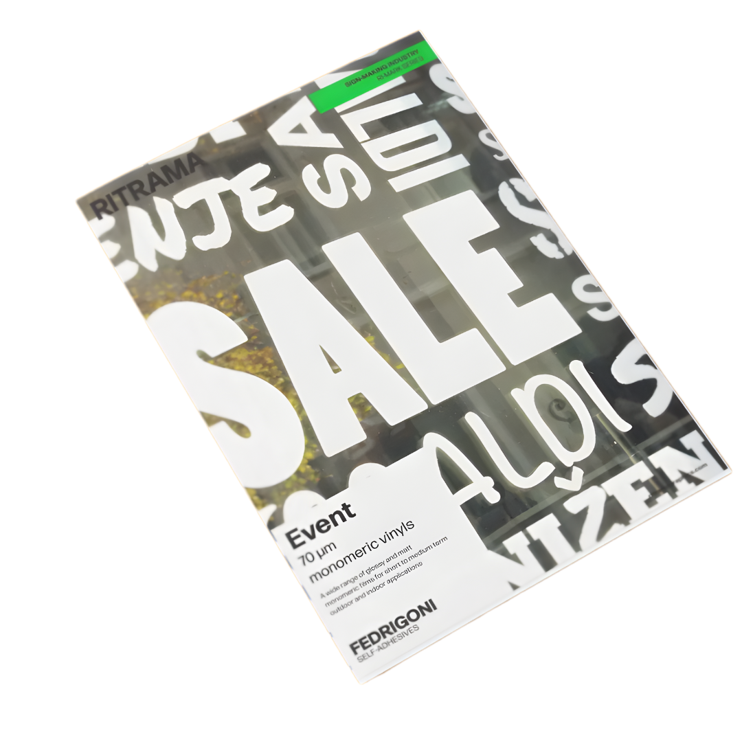 Kleurenkaart met kleurstalen van de Ritrama Event 100 (Glossy) en Event 300 (Matt) Series, formaat van de stalen ca. 24 x 24 mm.