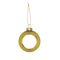 Deze kerstbal is gemaakt van goud plastic. Aan een kant heeft de bal een vlak inzetplaatje dat je kunt bedrukken door sublimatie. De kerstbal heeft een doorsnede van 80 mm, en het inzetplaatje een doorsnede van 50 mm.