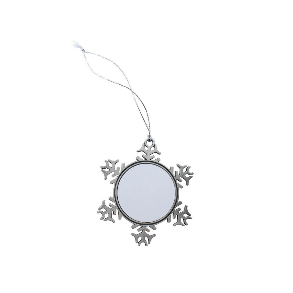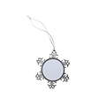 Dit sublimatie ornament is gemaakt van tin en heeft de vorm van een sneeuwvlokje. Het ornament heeft een rond inzetplaatje dat je eenvoudig en snel bedrukt door sublimatie. Zo maak je in een handomdraai een gepersonaliseerd product!