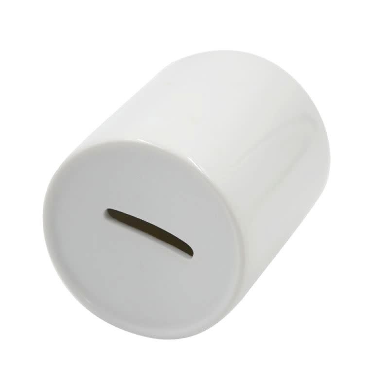 11oz (325 ml) Subli-Print® spaarpot met een gleuf aan de bovenkant en een rubberen stop aan de onderkant om veilig af te sluiten. De diameter van de spaarpot is ca. 79 mm, de hoogte is ca. 94 mm.