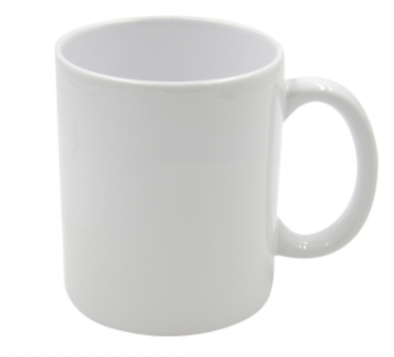 Subli-Print® keramische mok Classic met C-vormig handvat en een wit glanzend oppervlak. De diameter van de 11 oz keramische mok is ca. 80 mm, de hoogte ca. 96 mm.