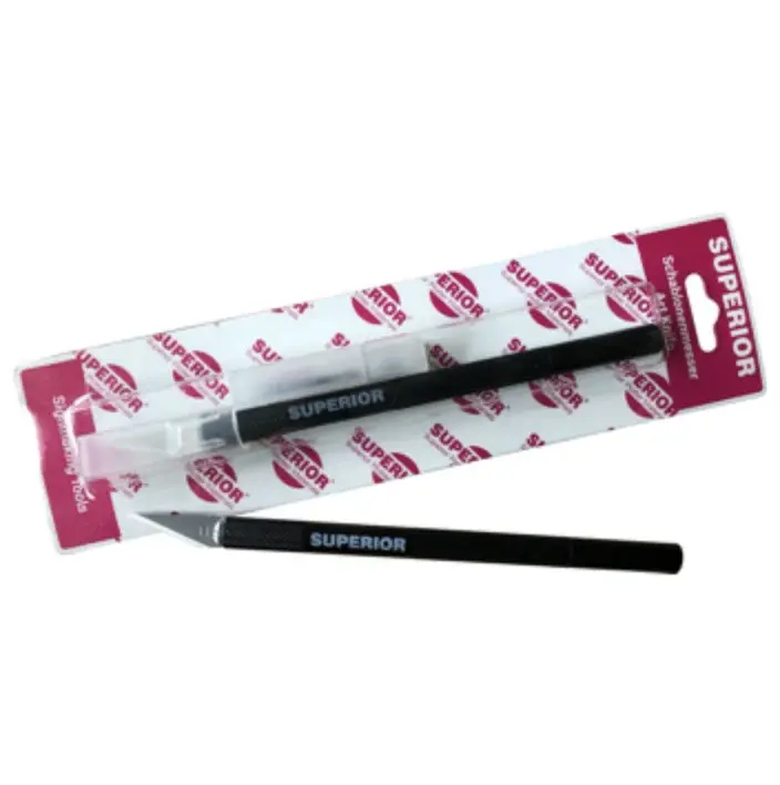 Het SUPERIOR mes is zeer geschikt voor het snijden van fijne details. Het mes wordt geleverd met één reeds bevestigd mes en een doosje met vijf reservemesjes.