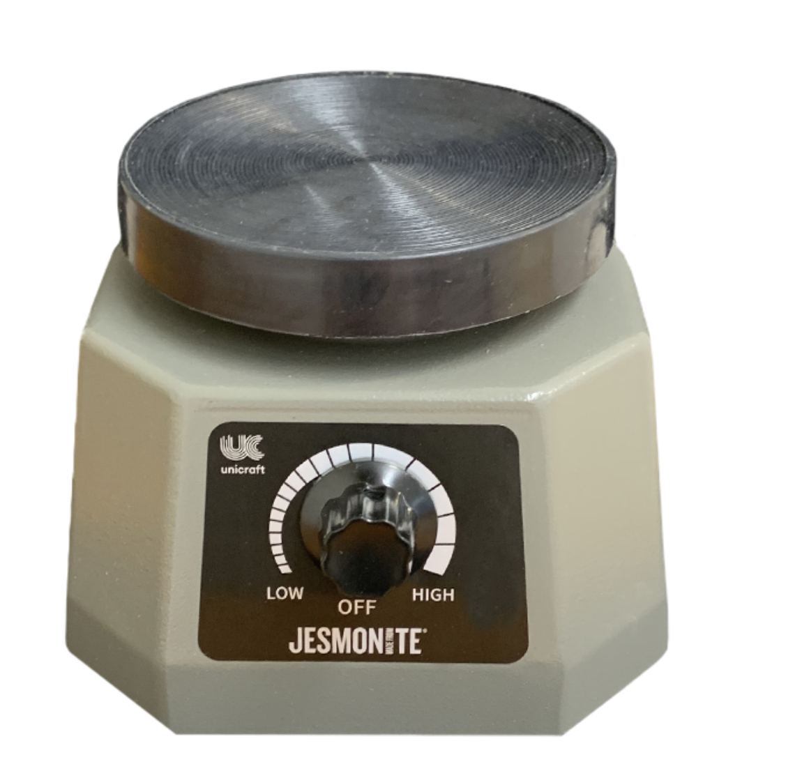 Plaats je gevulde mal op deze trilplaat om luchtbellen de verwijderen uit je Jesmonite creatie.