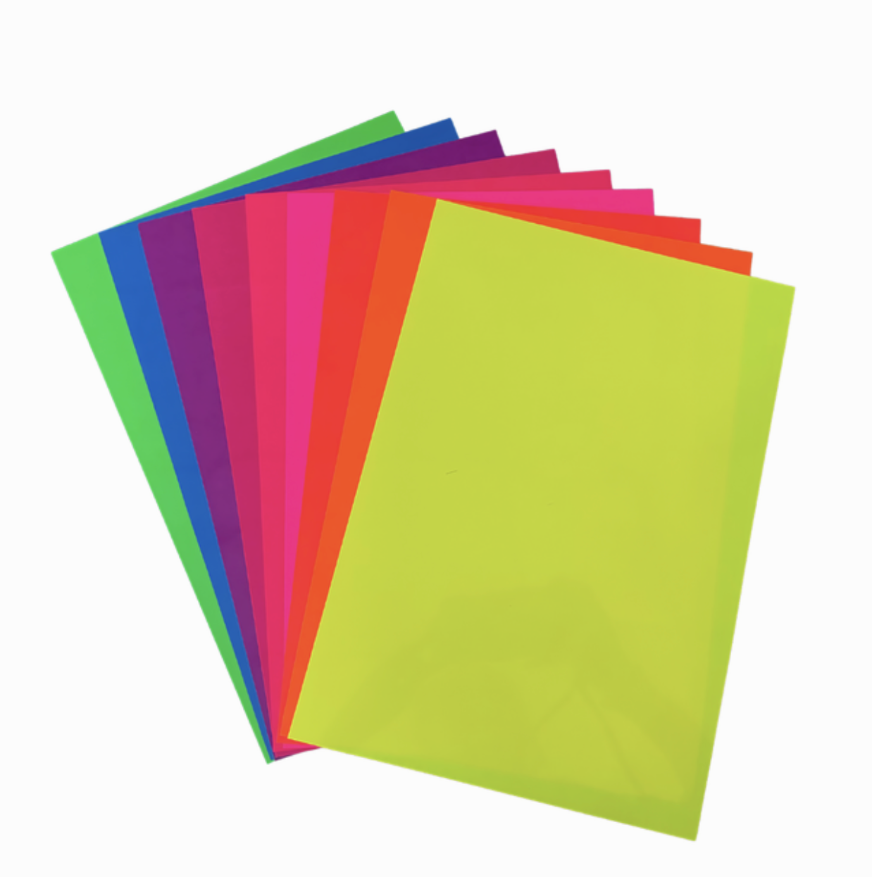 Pakket van 9 kleuren. Fluo-feest met flexfolie: laat je ontwerpen schitteren als neonlicht op je kleding! Breng die opvallende, felgekleurde stijl naar je outfit.